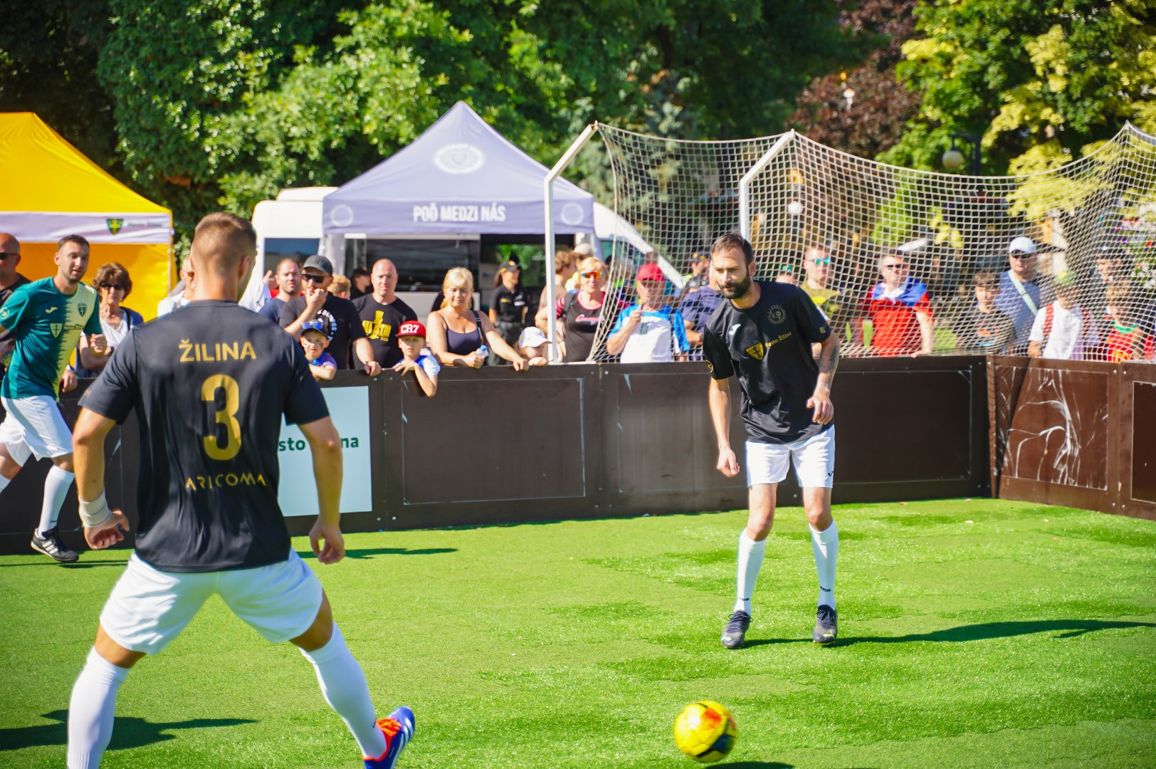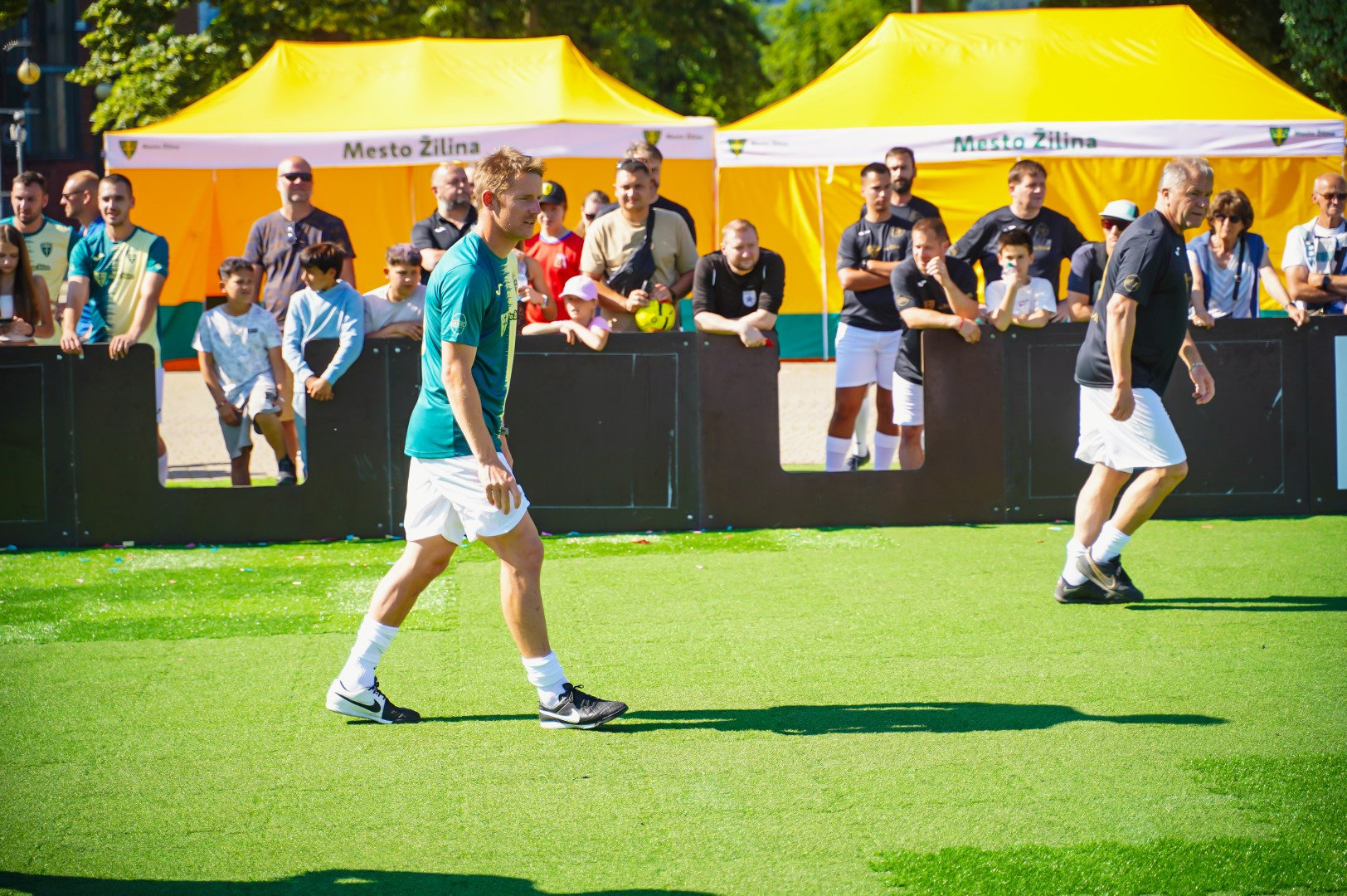 V rámci futbalových majstrovstiev Európy hráčov do 21 rokov vyvrcholil program v Žiline nielen zápasmi na štadióne MŠK Žilina, ale aj priamo aj na námestí. Improvizovaná trávnatá aréna s umelým podkladom privítala také hviezdy ako napríklad Tomáš Hubočan (39) či Viktor Pečovský (42).